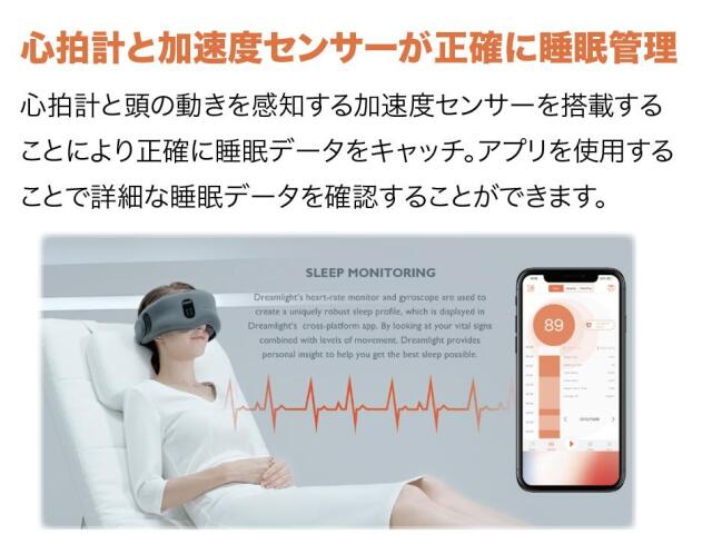 心拍計と頭の動きを感知する加速度センサーを搭載する ことにより正確に睡眠データをキャッチ。アプリを使用する ことで詳細な睡眠データを確認することができます。