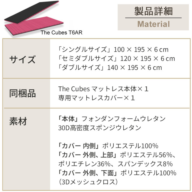 TOPALL 全商品ライナップ The Cubes 無重力マットレス 腰や肩への圧力を軽減 快眠マットレス NASA開発素材 体圧分散 通気性抜群 高さ6cm 折り畳み 耐久性 睡眠負債 セミダブル シングル ダブル 価格: ¥74,800 (税込) ~ ¥104,800 (税込) [ポイント還元 748ポイント~] 販売期間: 数量: 個 サイズ価格在庫購入シングル¥74,800(税込)× セミダブル¥86,800(税込)○ ダブル¥104,800(税込)○ サイズ価格在庫購入シングル¥74,800(税込)× セミダブル¥86,800(税込)○ ダブル¥104,800(税込)○ 返金保証について詳しくはこちら