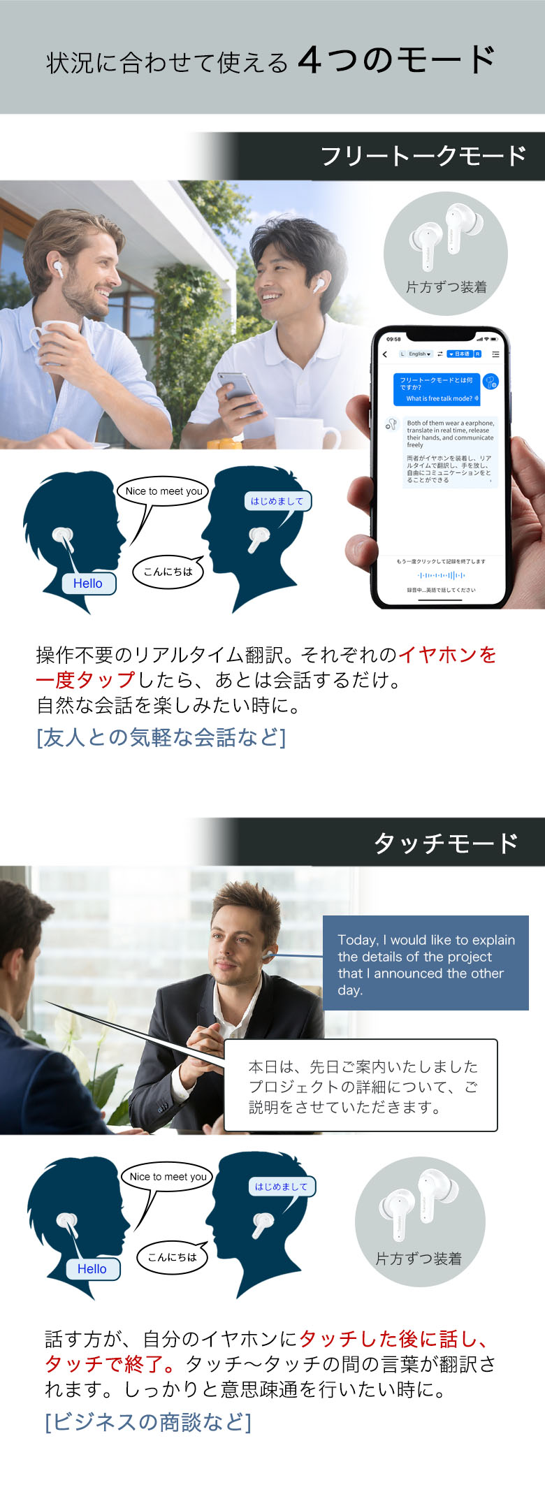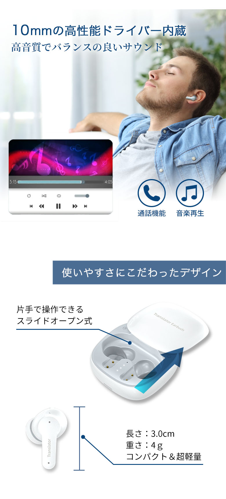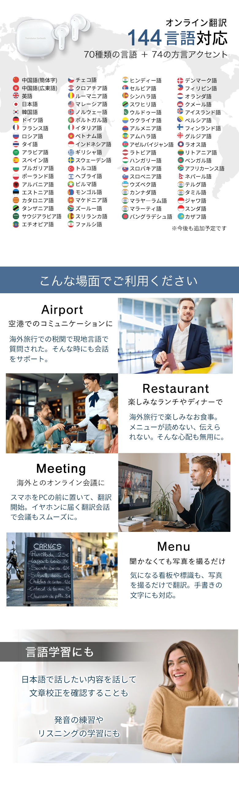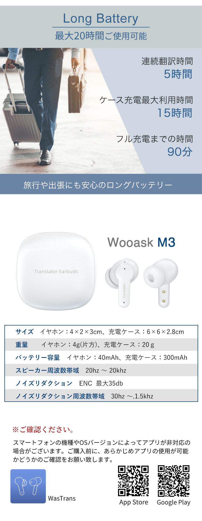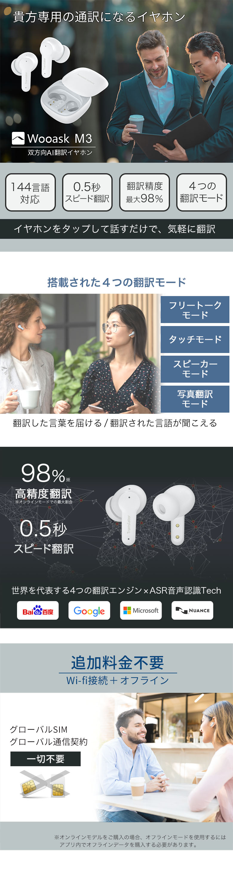 TOPALL 全商品ライナップ Wooask M3 AI翻訳機 ワイヤレスイヤホンとしても利用できる 144カ国の言語を翻訳可能 言語の壁を超える 翻訳、通話、音楽再生を1台で 日本公式 価格: ¥17,600 (税込) ~ ¥23,980 (税込) [ポイント還元 176ポイント~] 販売期間: 数量: 個 タイプ価格在庫購入オンライン対応¥17,600(税込)○ オン&オフライン対応¥23,980(税込)× タイプ価格在庫購入オンライン対応¥17,600(税込)○ オン&オフライン対応¥23,980(税込)× 返金保証について詳しくはこちら